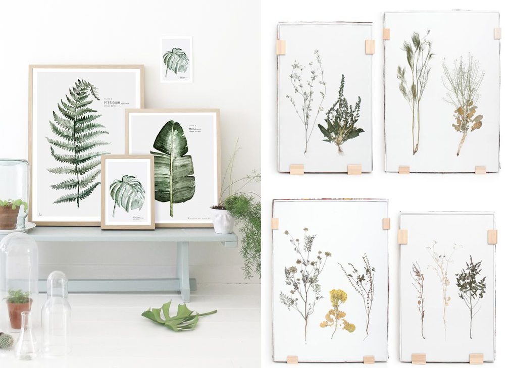 Ah la nature… l’idée de pouvoir la perdre, la rend encore plus précieuse (ouais c’est comme en amour). On serait prêt à pousser nos meubles pour lui faire plus de place (les compromis de la vie de couple). Mais n’abusons pas, l’ambiance jungle de Truffaut guette votre salon. Soyons raisonnables, encadrons la nature et faisons lui une place de choix : sur les murs et sous verre façon herbiers. On ca-na-li-se.