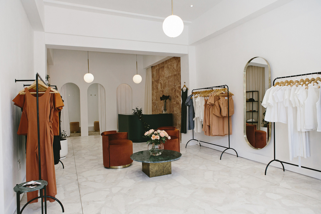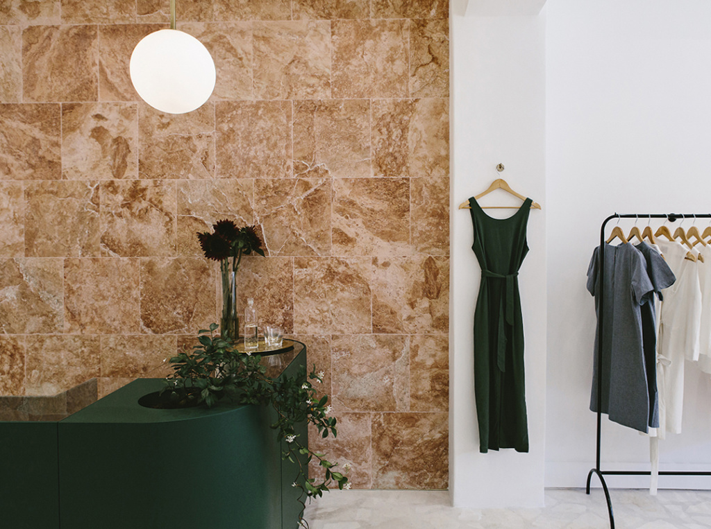 À Cape Town, la boutique fraîchement ouverte de Margot Molyneux fait déjà des émules. Travertin au mur, velours saturé, marbre vert, et boules de lumière signées Michael Anastassiades… Le tout, empreint de féminité et de délicatesse. Le genre de boutique où l’on rentre faire une photo, où l’on bave un bon coup sur les fringues et où l’on ressort en titubant. Voyez par vous même.